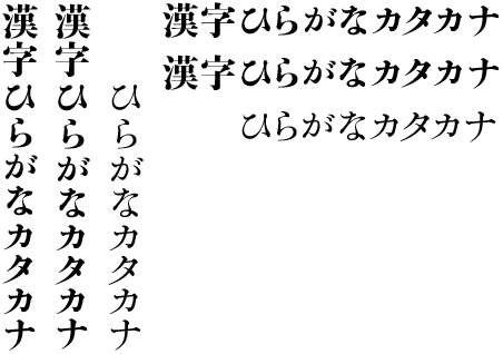 当然、漢字だけでは文章は組めない。「小町・良寛」を始めとした味岡伸太郎かなシリーズでは五種類の仮名を制作した。今回の「味明」には、それを、さらに増やし、筆記体に近いものから、活字の復刻やモダンな仮名まで、10種の仮名をセットした。これだけのバリエーションがあれば、あらゆる用途に使えるだろう。 |